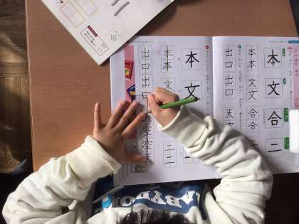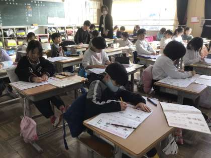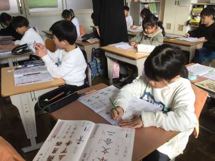 2年生の書写では、字の中心を意識して漢字の練習をしました。お手本の中心線をよく見て、左右対称になるように意識して書いていました。