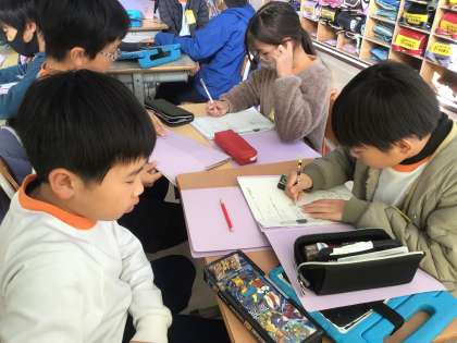1/17の学習では、2月、3月に体育館で行うスポーツイベントの準備を行いました。イベントは長い休み時間に行い、全校児童が対象です。4年生児童は、楽しく体を動かすゲームを決め、役割分担をして、計画書を作りました。
