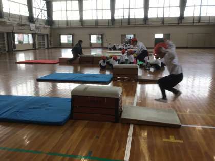 1/20の授業では、跳び箱の踏み切る位置や手をつく位置を確認して、跳び箱に飛び乗り、ジャンプをしていました。