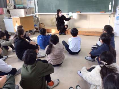優しく、柔らかな読み聞かせの声が響く教室は、とても心地よいものです。あたたかな雰囲気に、子どもたちはリラックスしてお話の世界に入り込んで、楽しんでいます。