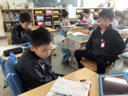 1/27の学習では、教科書を読んだ後、日本にいる外来種を調べ、ノートにまとめました。そして、調べたことを隣の児童と情報交換しました。「うちの屋根裏に、ハクビシンがいたんだよ」などと、友達に話していました。