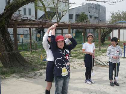 伊保小学校の運動会では、毎年高学年はトーチワークとスタンツを行っています。運動会に向けてトーチワークの練習が始まりました。今まで、高学年の演技に憧れを抱いていた5年生、練習を心待ちにしていました。水曜日に6年生からトーチワークの技を教わりました。技の手本を見せてもらったり、こつを聞いたりしながら進めていくうちに、トーチ棒の扱いが上手になりました。中には1時間でほとんどの技ができるようなった子もいました。