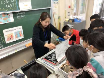 版画の刷り方を学んだよ(4年生)