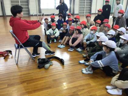 5年生の総合的な学習の時間では、通年で福祉について学習しています。2/3に、パラアスリート事業があり、トヨタ自動車からパラアスリートを講師にお招きして福祉について学びました。