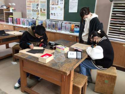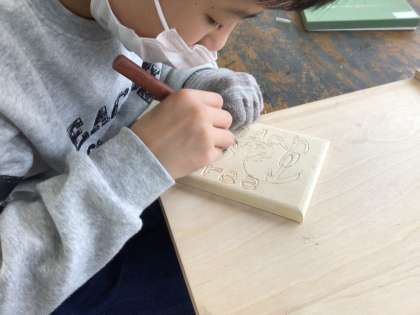 6年生の図工では、卒業制作として木彫のオルゴールボックスを作っています。