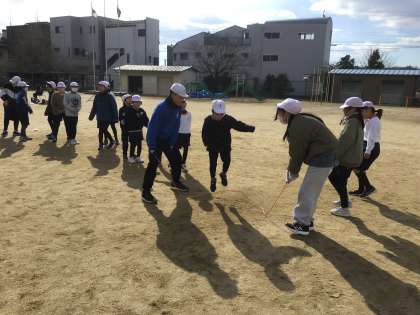 2/6に、なわとび集会を行いました。児童は、1月から、長い休み時間を使って、8の字跳びの練習をしてきました。なわとびは、縦割り班で行いました。