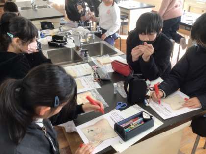 児童は、手洗いがいかに重要か、学んでいました。この実験結果を、児童はまとめていました。今後、保健室前の廊下に掲示されます。