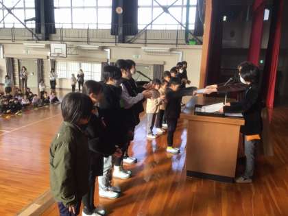 最後に全校児童で歌を歌いました。寒い朝でしたが、大きな声が響きました。