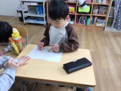 特別支援学級(1,3年生)では、、プリントを使って小さい「つ」の使い方を学びました。「おもいきり つなを ひっぱた」「おもいきり つなを ひっぱった」のどちらが正しい使い方なのかなど、問題に取り組みました。考えに詰まると、担任の先生と手をたたいて、確認をしました。