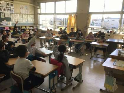 「みんなが使う場所だから」「(空かんを拾っている人を見て)ぼくもやればよかった」など、公共の場所を使うときに大切なことについて考え、意見を発表していました。