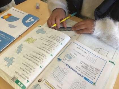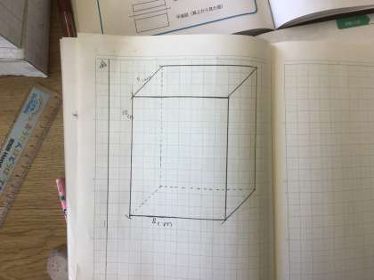 2/20の学習では、直方体の見取り図の描き方を学習しました。平行に気をつけて線を引き、奥行を表していました。