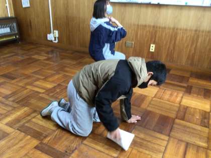 2/21は、特別教室のワックスがけを行いました。重い机や教室のロッカーなどを動かして、雑巾で床を水ぶきしてから、ワックスをかけました。ワックスが長持ちするように、二度、三度と塗りました。ワックスがかけられた特別教室の床は、光り輝いていました。6年生のみなさん、ありがとうございました。