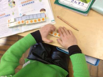 1年生の算数では、「おおいほう すくないほう」を学習しています。