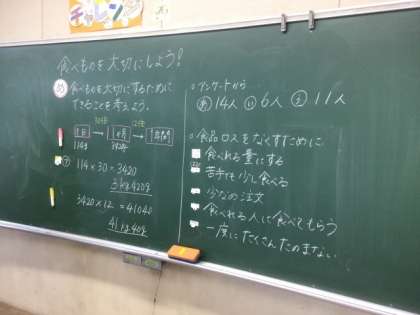 3年生の算数では、習ったことを使って児童にとって身近な問題である食品ロスについて考えました。