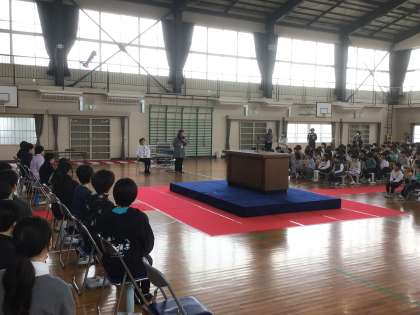 会の中では、感謝状をおくり、全校児童で「にじ」を歌い、お二人への感謝の気持ちを伝えました。お二人からは、感謝の言葉がありました。涙、涙の会でした。