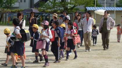 先日はお忙しい中にもかかわらず親子通学路点検にご参加いただき,ありがとうございました。ご指摘いただいた通学路の要望は,「交通安全推進協議会役員会・委員会」で,各自治区の区長さんをはじめ役員,委員の皆さんと協議をして,教育委員会に対して整備要望を提出していきます。
