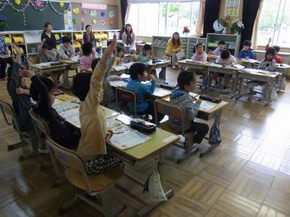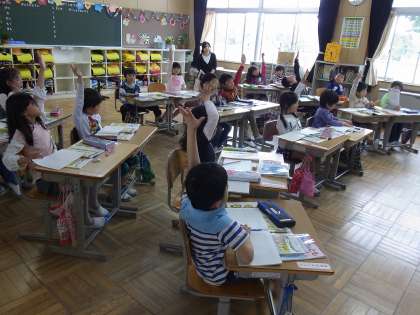 「幼こ小連絡会」というのはちょっと変わった名称の会ですが,正式には「幼稚園・こども園と小学校との連絡会」というものです。1年生が入学して3週間。だんだんと学校に慣れてきたので,学習や生活でがんばっている様子を園の先生方に参観していただき,1年生の子どもたちを励ましてもらおうと計画しました。また,参観のあとで,園の先生方と1年担任との懇談会を行って,園での様子をうかがったり,学校でのがんばりの感想をうかがったりしました。