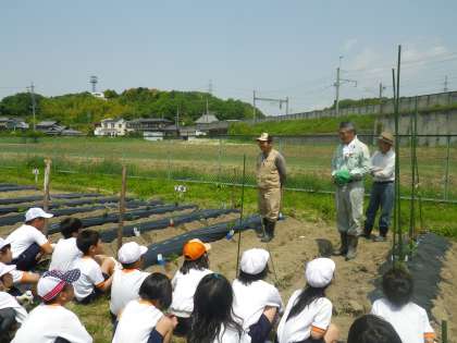 先週の金曜日に、野菜の苗を学校の畑に植えました。子どもたちは生活科の学習で自分の育てたい野菜を決めて、この日を楽しみにしていました。今年は3人の地域講師の方に野菜作りをご指導していただきます。野菜の苗の植え方を教わりながら、子どもたちは、「早く大きくなるといいな」「おいしい野菜ができるといいな!」と意気込んでいました。地域の野菜づくり名人の皆様,ご指導ありがとうございました。