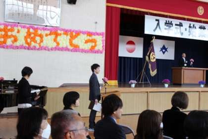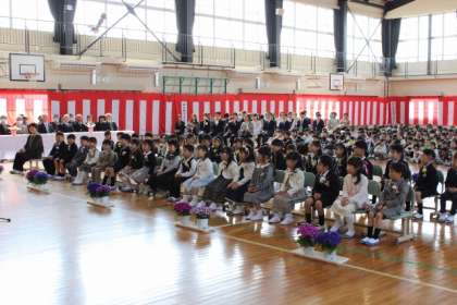 4月8日(火)、1年生37名が伊保小学校に入学しました。担任の先生に名前を呼ばれて、元気に返事をしました。進級した2年生から6年生が新入生を温かく見守って迎えました。
