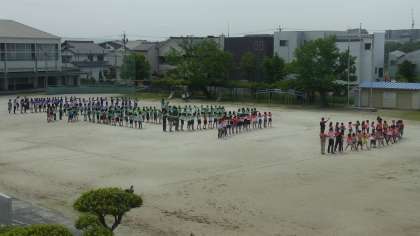 伊保小学校は,今年,開校140周年を迎えました。その記念として航空写真を撮影しました。