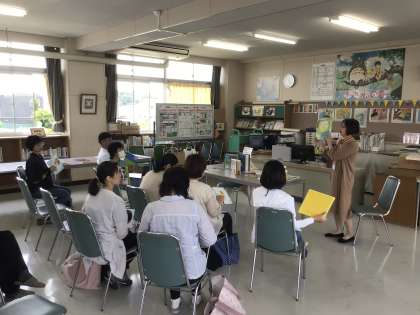 6月4日(水)に読み聞かせサークルふむふむさん主催の読み聞かせ研修会を行いました。講師に豊田市中央図書館 読書指導者の道山由美先生をお迎えして、「子どもと本の出合いを作る」ための読み聞かせの基礎やコツを保護者の方に教えていただきました。子どもたちは、年間9回の読み聞かせの時間を楽しみにしています。