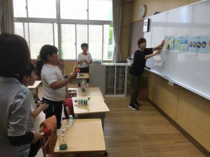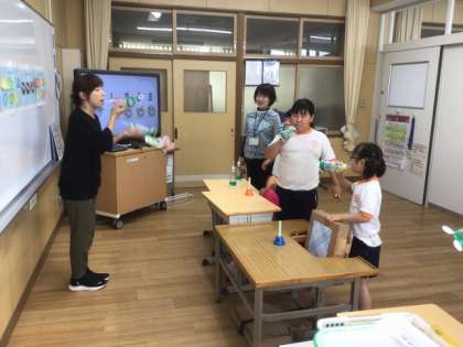特別支援学級2〜5年生の音楽では先日、ペットボトルとストローを使ってラッパを作りました。