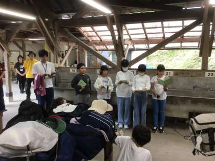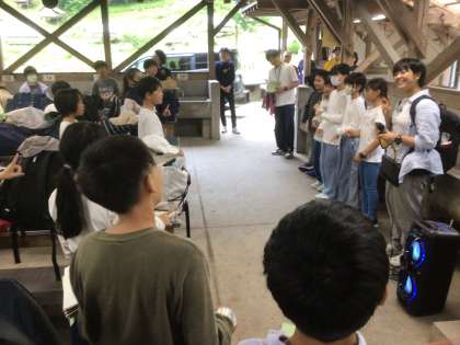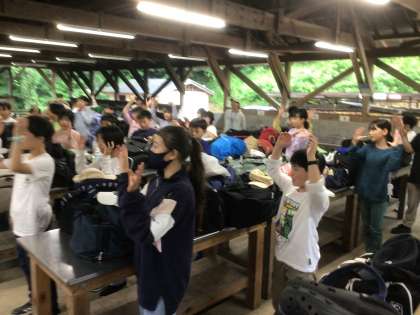 入所式の最後に、「にじ」を歌いました。手話を交えて、歌いました。綺麗な歌声が、山々に響いていました。