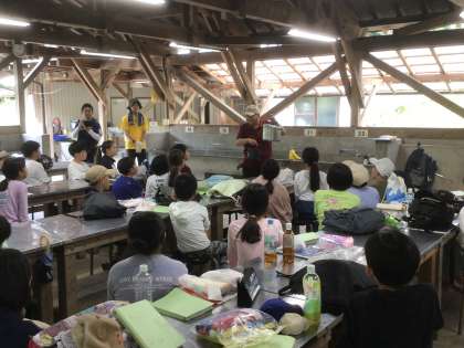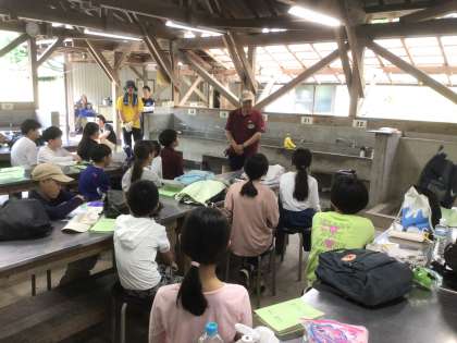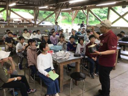 最初に所員さんから、安全なかまどの使い方や、飯ごうの使い方を教えていただきました。