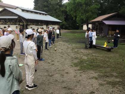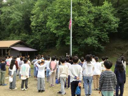 朝のつどいは、昨日雨でできなかった校旗掲揚を行いました。代表児童は「昨日できなかったオリエンテーリングが今日は楽しみです。みんな頑張りましょう」と呼びかけました。