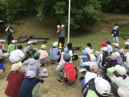 続いて、昨日行えなかったオリエンテーリングの説明を、所員さんから受けました。作戦タイムに、コースを話し合いました。
