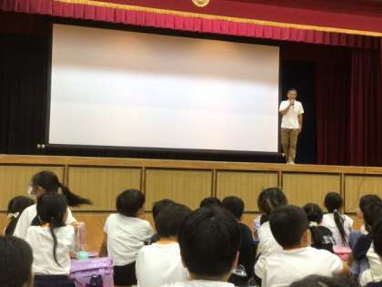 日頃、家の近所の公園などで遊んでいても、児童が気付かない危険個所について、スライドを見ながら学びました。