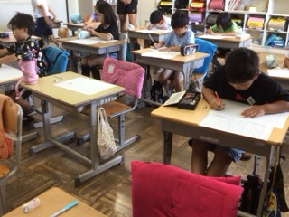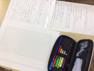 7/14の学習では、詩の書き方を教えてもらいました。書きたい内容を下書きの紙に書いて、原稿用紙に詩を書いていました。