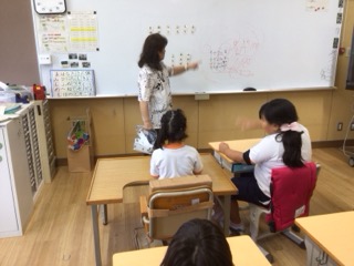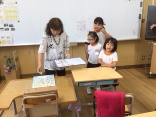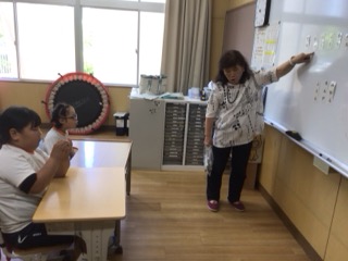 7/14に、特別支援学級2〜4年生はひらがなでできた言葉を読む練習をしました。「むし」「つり」「れんが」など、ホワイトボードに貼られた言葉を読んでいきました。