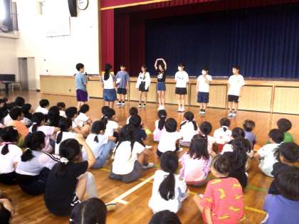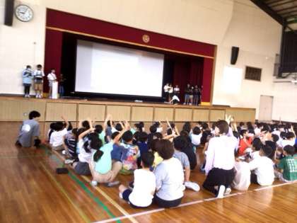 全校児童はとてもよい姿勢で、うなずきながら聞いていました。