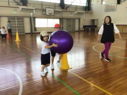 9/1の学習では低学年チームはボール運びを行いました。前半は2人でボールを運び、後半はボールを転がして運びました。