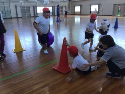特別支援学級の体育では、イメージどおりに体を動かすことができるようにトレーニングを積んでいます。
