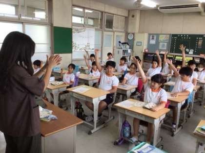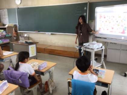 9/4の3年生の外国語では、ALTの先生が来て、楽しく勉強をしました。
