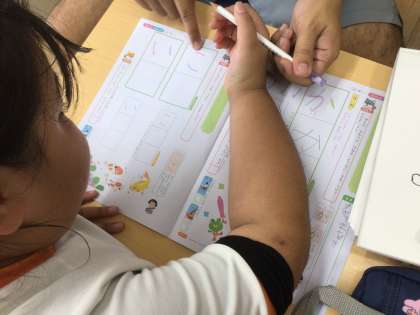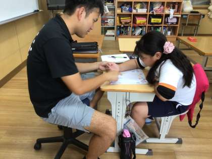 9/10の授業では、ノートの文字をゆっくりとはみ出さないように書きました。色の濃さもよく、きれいな文字が並んでいました。