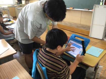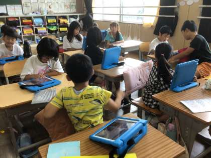 9/10の授業では、作った作品を写真に撮り、作品紹介をタブレットで作りました。