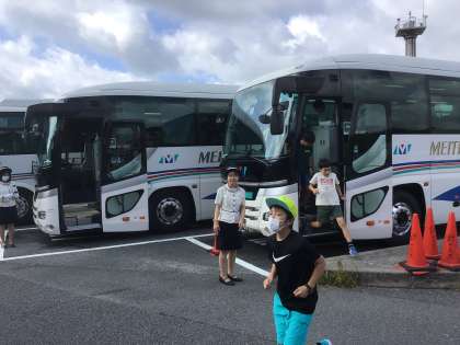 バスは、針テラスでの休暇を終えて、法隆寺に向けて出発しました。針テラスは、標高が450m程あるため、爽やかです。