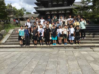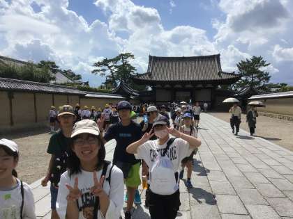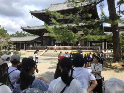 学級写真を撮り、法隆寺の伽藍に入りました。