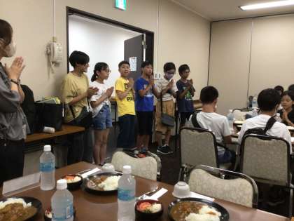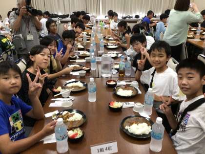 昼食はカレーライスをいただきました。あまりのおいしさに、何回もおかわりした子もいました。