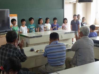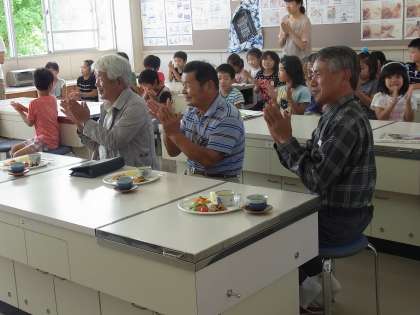 9月30日に、2年生が生活科の授業で野菜パーティをしました。野菜作りでお世話になった、野菜名人の皆さんをお招きして感謝を伝えるとともに、おいしい野菜の食事を一緒に楽しみました。野菜名人の皆さん、ありがとうございました。