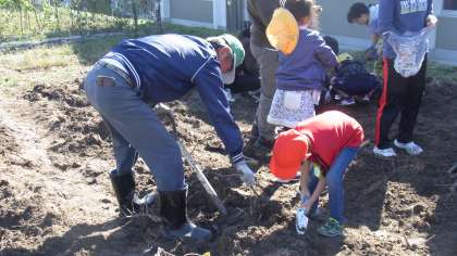 10月28日に、稲刈りとサツマイモ堀りをしました。多くの実りに子どもたちは大喜びでした。
