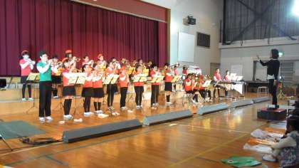 これまで練習を重ねてきた「銀河鉄道999」「A Whole New World」の2曲を金管合奏で披露しました。一人一人が自分のパートを精一杯演奏して、1曲目は力強く、2曲目は美しいハーモニーを奏でました。とても聞き応えのある、すばらしい演奏でした。