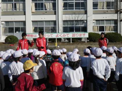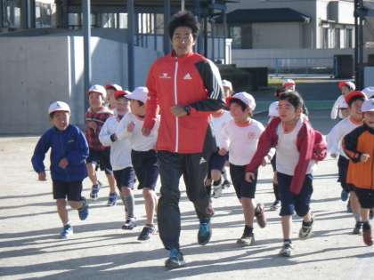 トヨタ紡織陸上部の皆さんを講師にお招きして、陸上教室が開催されました。低・中・高学年に分かれて、うまく走るためのコツや、正しい走り方の手ほどきをしていただきました。練習では、みんな最後までしっかりと走り抜いて、講師の皆さんよりお褒めの言葉をいただきました。子どもたちに「最後までがんばり抜く強い心」が育っていることを、とてもうれしく思いました。