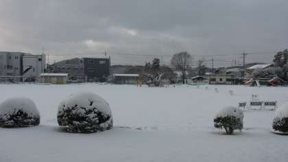 この冬、初の積雪でした。子どもたちは大喜びで遊んでいました。