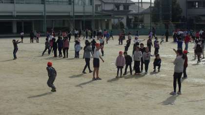 久しぶりに寒い1日でした。子どもたちは、せんだんタイム(長放課)には外に出て、なわとび大会に向けて、がんばって練習をしています。なわとび大会は、個人種目と団体種目があります。写真は、フレンド班(縦割り活動班)で、長なわとびの練習をしているところです。