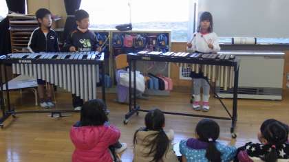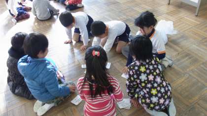 新1年生の保護者向けに、入学説明会を開催しました。保護者の方が説明を聞いている間、新入学予定児のみんなは、本校の1年生と一緒に活動をしました。
