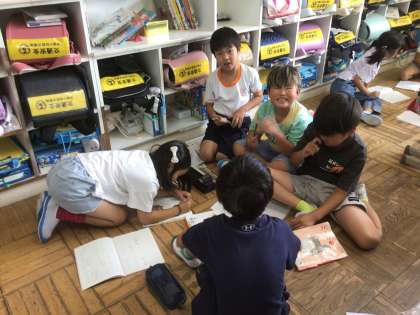 9/22の授業では、音読発表会の準備をしていました。「ナレーター」「ねこ」「ねずみの先生」「子ねずみ」など、役割を決めていました。